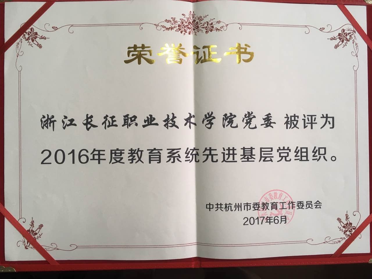 2017年6月,经基层推荐,杭州市教育工委考核评比,我院党委被评为2016年度杭州市教育系统先进基层党组织。希望各基层党组织和全体党员在学院党委的带领下,继续发挥战斗堡垒和先锋模范作用,团结一致,不断增强凝聚力和战斗力,为学院改革与发展贡献力量。