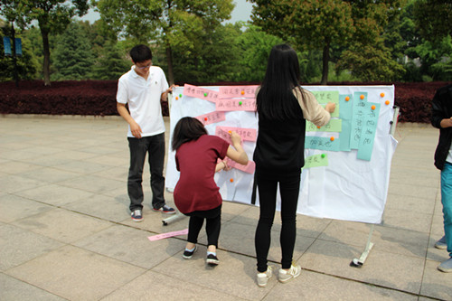 本次活动中,我系各个班级同学认真对待,表现的都非常出色。每个班级需要选出十位同学来参加比赛,通过接龙的方式将十句诗词贴在终点处,最后一位同学将整首诗词拼成完整的诗句,用时少的队伍将获胜。比赛开始时,同学们都有一些紧张。随着比赛的进行,大家都向第一名发起进攻,生怕落后于其他班级 。比赛进行的十分流畅,接龙时击掌声一个比一个响,在旁围观喝彩的同学也跟着喊加油,最后同学们带着欢笑的心情结束此次比赛。13工程造价二班成功夺得桂冠,13建筑工程管理二班、13建筑工程管理一班名列二三名。