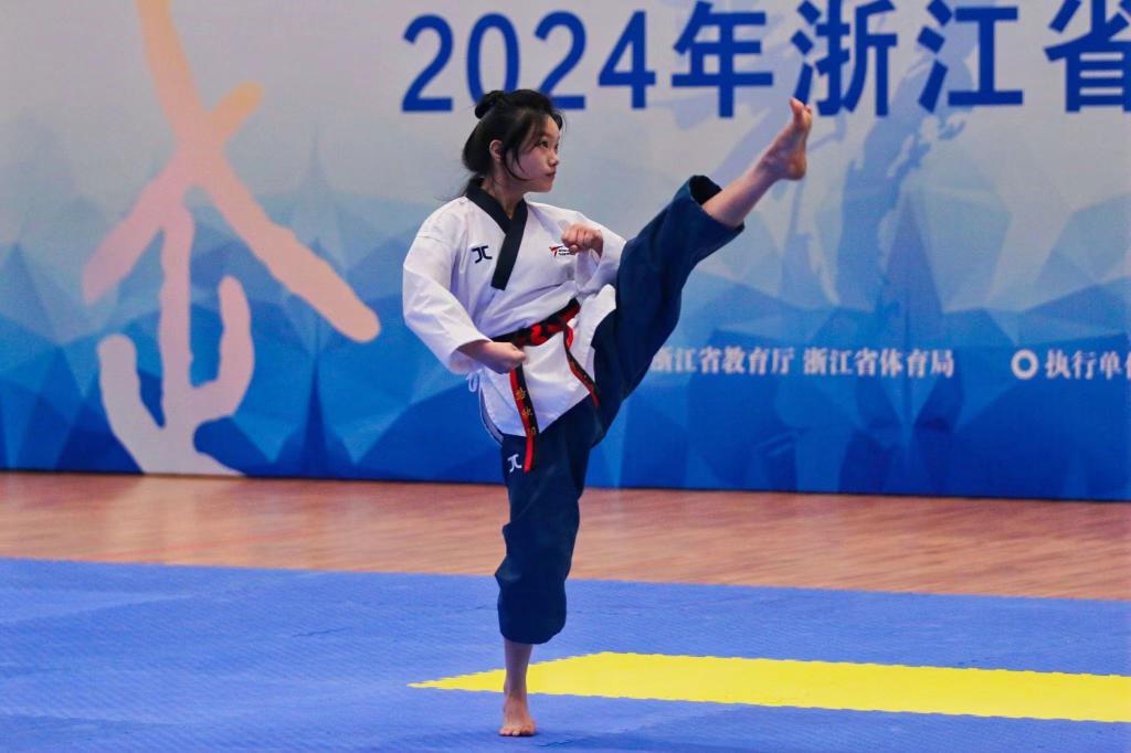 近日,浙江省大学生武术(跆拳道)锦标赛(乙组)比赛在浙江东方职业技术学院(滨海校区)顺利落下帷幕,我校武术代表队斩获个人金牌5枚、铜牌1枚,并获女子团体第二名,男子团体第三名,叶驰同学被评为优秀运动员,薛佳妮老师被评为优秀教练员。