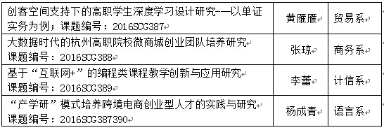 根据浙教办教科(2016)10号文件,按《浙江省教育科学规划课题管理办法》的有关规定,经活页匿名委托评审、评委委员会专家审议等程序,我院获四项2016年浙江省教育科学规划立项课题,请获得课题立项的老师认真做好开题,按时保质保量完成研究任务。