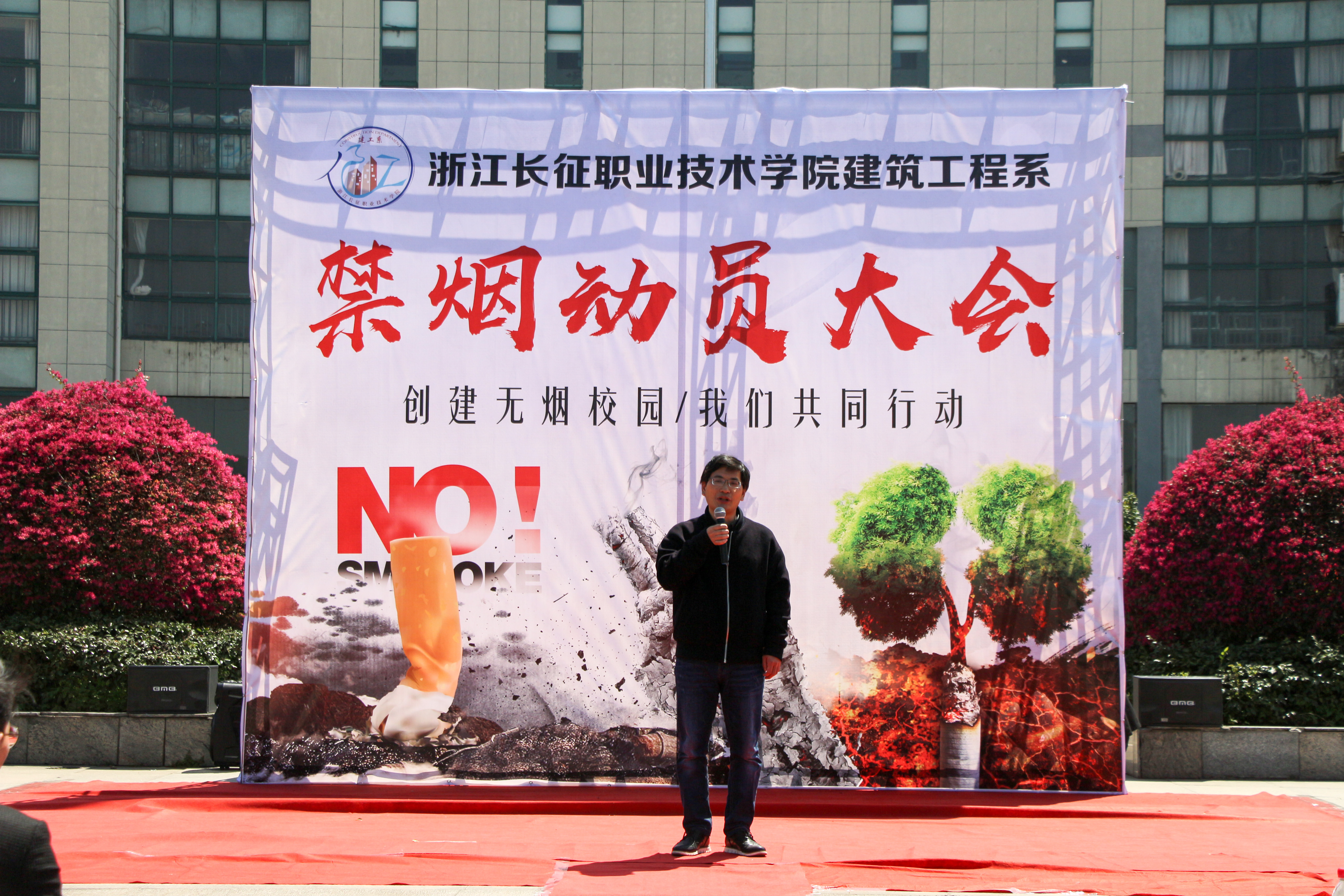 为推进无烟校园创建工作,提高全校师生的健康理念,保护广大师生的身心健康,积极营造教书育人和学习生活的清新怡人环境,建筑工程系于2019年4月1日中午12时40分在校图书馆前召开了“创建无烟校园,我们共同行动”禁烟动员大会。学校学工部部长樊丽庆、建筑工程系副主任高荆民、建筑工程系党总支副书记章剑飞、建筑工工程系学工办副主任余泓以及全系教师、团学全体学生干部、各班班委参加了大会。