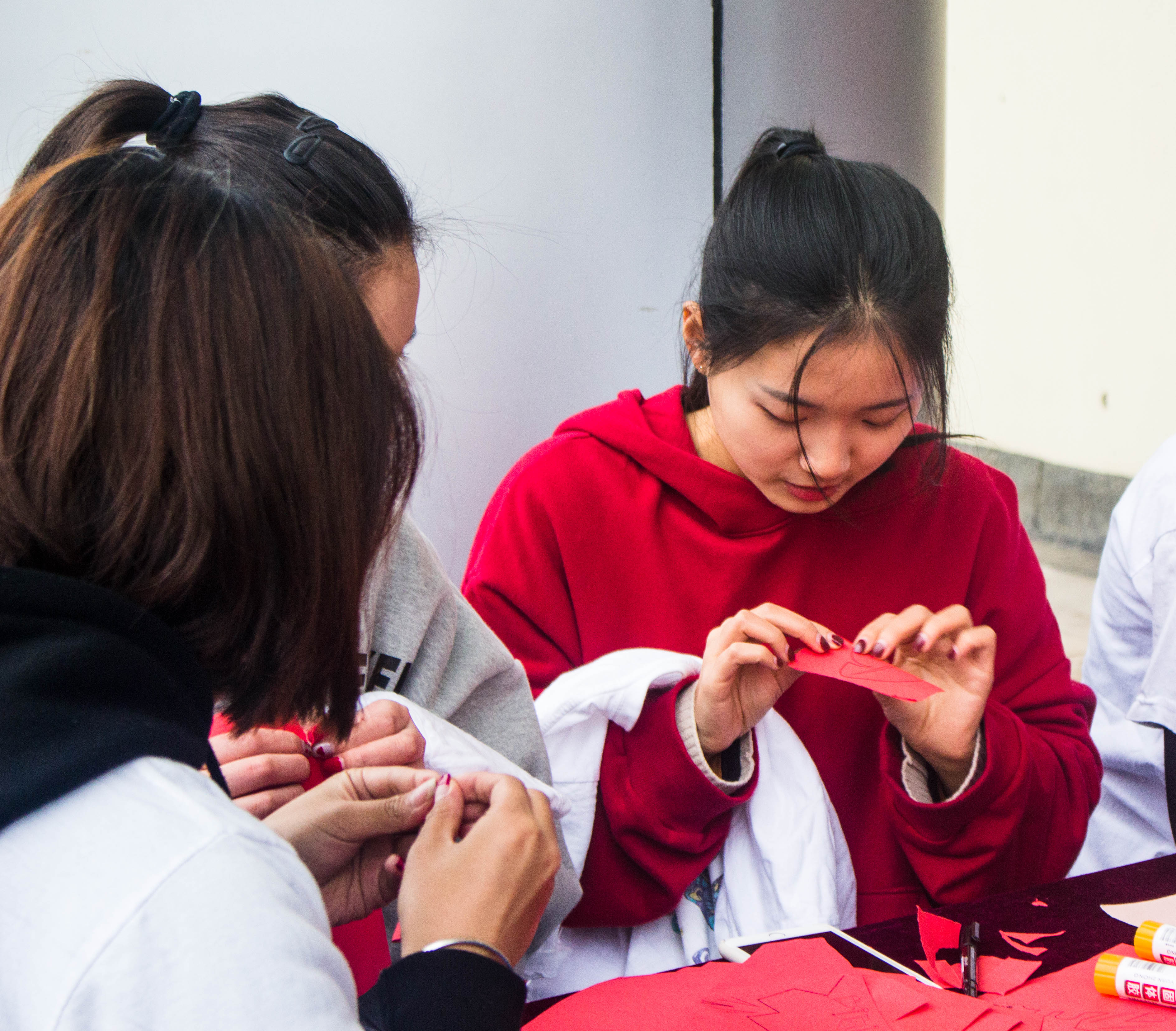 开幕式在汉服协会的古装展示和天籁音乐社的歌曲串烧中拉开帷幕。我校8个系80名学生代表参加“流光溢彩”现场剪纸、拼图制作比赛,各系参赛选手在指定的比赛区域里分工合作,配合默契,细致耐心地完成剪纸,并将剪纸拼成一幅幅代表着美好祝福的精美图案,赢得了围观师生的一致好评。