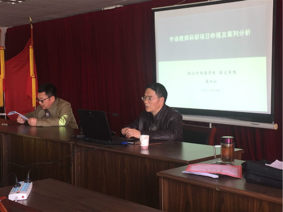 2017年4月12 日下午,在行政楼第三会议室,应用语言系很荣幸地邀请到浙江外国语学院的蒙兴灿教做了题为《外语教师科研项目申请及案例分析》的讲座。讲座开始前,语言系主任杨成青教授对蒙教授作了简单介绍,并代表全体教师对他的到来表示热烈欢迎。蒙教授的讲座主要分三部分,首先讲的是外语项目种类的分析,接着讲外语项目申报书填写以及外语项目案例的分析。他从自己作为申报者和课题评审者的角度,为教师讲解了课题每一项内容撰写的要点和需要注意的问题,并结合申报案例进行分析。他的讲座深入浅出,传授了丰富的科研经验,交流了学习心得,解答了老师们的困惑,给语言系教师的科研项目申请提供了新的突破口,让教师们受益匪浅。(应用语言系供稿)