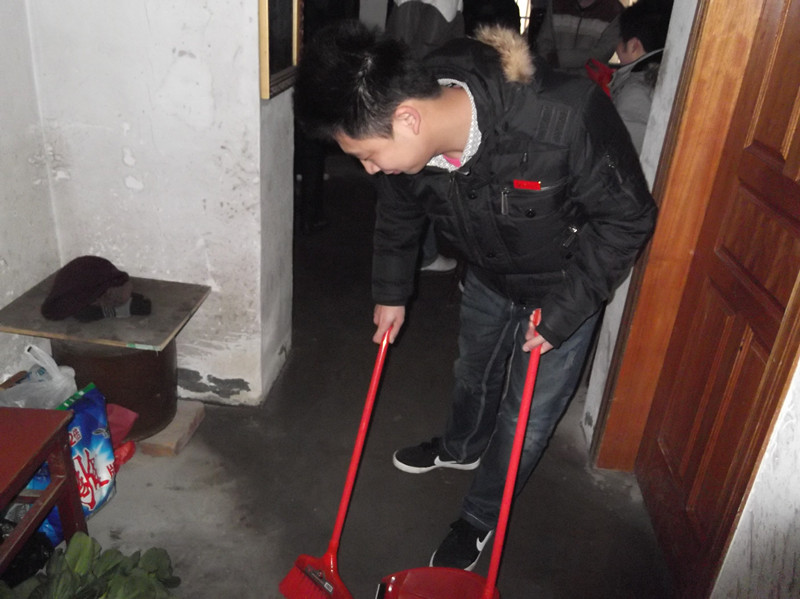 上午10点,学雷锋小组的志愿者来到钱老太家中,一进老人的家门,志愿者们便忙着打扫屋子,除了给老人送去水果,扫把、畚斗等慰问品外,志愿者们还嘘寒问暖询问老人的生活起居和身体状况, 了解老人生活中存在的实际困难,老人家也非常高兴的拉着大家唠家常,兴奋喜悦之情溢于言表。