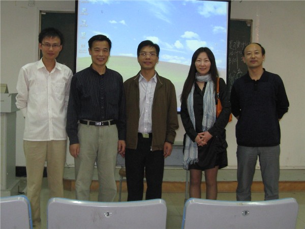 商务系老师张敬伟、刘永与企业专家谷忠军、胡格菲、王建波合影