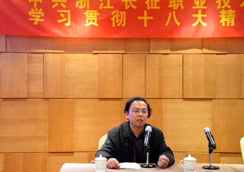 根据党委2012年度党建工作计划,学院党委于2012年11月30日至12月1日在余姚召开“学习贯彻党的十八大精神专题会议”专题党员大会。学院全体院领导及近百名教职工党员参加了大会。会议由党委副书记王其军主持,会上基础部朱泽中教授作了题为《十八大报告解读》的专题报告。