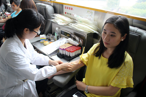 早上10点半,献血车刚刚停驻在图书馆前,就吸引了不少同学前来报名咨询。活动不到半个小时,献血的同学已经排成了长长的队伍。大家积极的填表格,一个接一个的检测血液。活动现场人群涌动,填表、化验、等候、献血,所有流程都井然有序地开展着。等候的同学们还向献血站工作人员询问关于献血的有关事项和献血小知识,对无偿献血有了更为深刻的了解,起到普及献血知识的作用。截至下午5点,共有122人参加献血,献血总量达35800CC。
