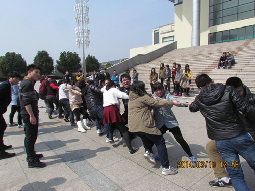 三月的校园阳光灿烂,凉风阵阵。为了丰富学生的课余文化生活,增进学生之间的交流,培养学生的团队协作能力,3月10日中午12:30分,财务管理系在体育馆前举办了一场别开生面的拔河比赛,财管系13级全体同学纷纷以极大的热情参与到这次活动中。